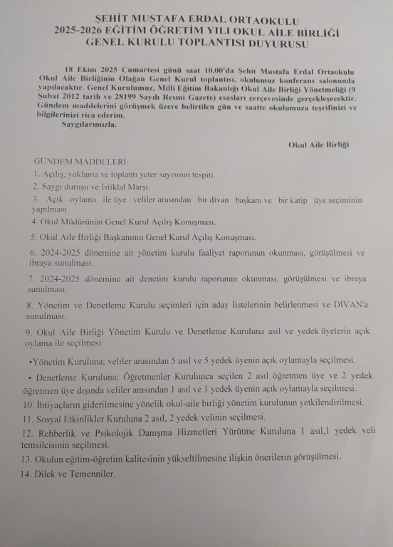 ŞEHİT MUSTAFA ERDAL ORTAOKULU 2025-2026 EĞİTİM ÖĞRETİM YILI...